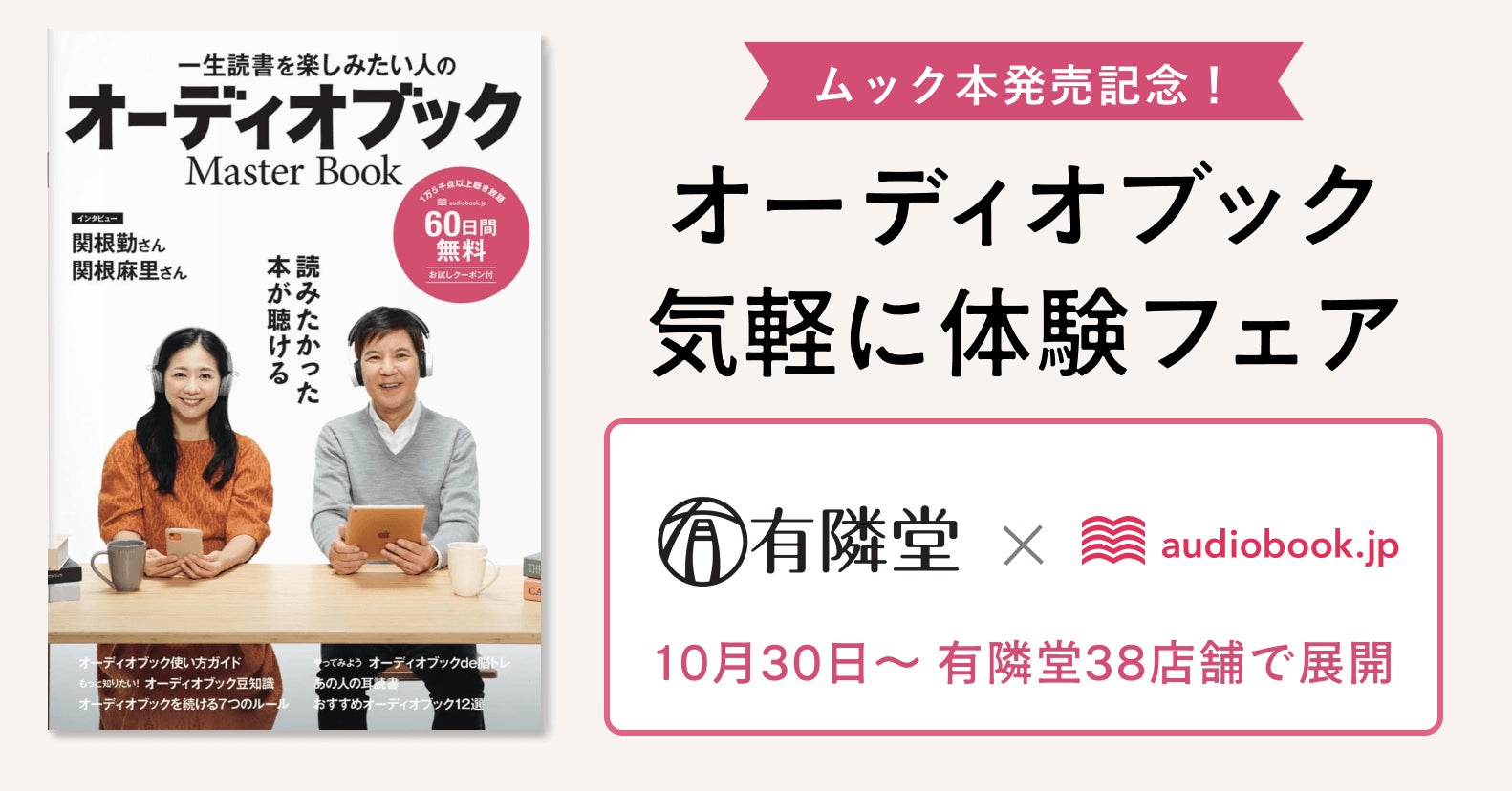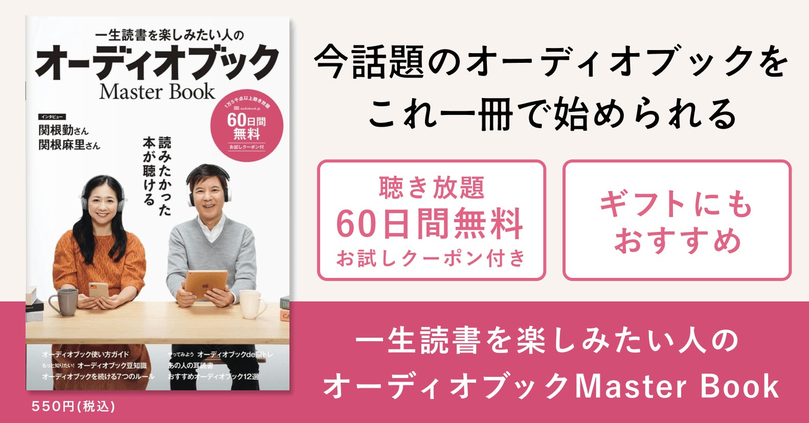 今話題のオーディオブックを、1冊で簡単に始められるムック本が登場!関根勤さん&麻里さんが表紙の『一生読書を楽しみたい人のオーディオブックMasterBook』刊行