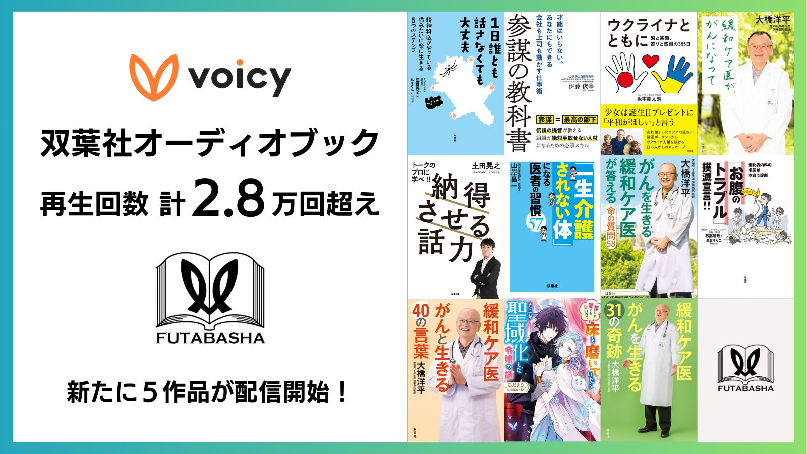 再生回数2.8万回超え!人気の双葉社のオーディオブック、新たに5作品がVoicyで配信開始(PR TIMES)
