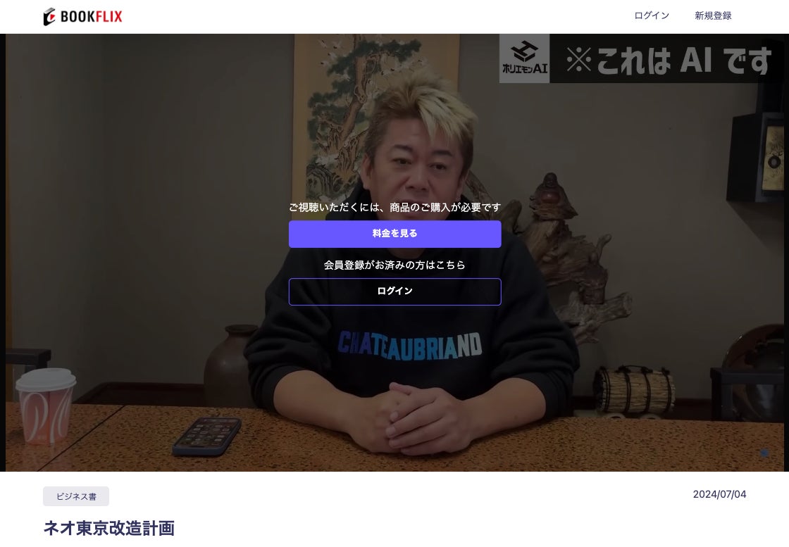 ホリエモンAI書店「Bookflix」公開、著者AIの朗読本を観る第三の読書体験がはじまります。都知事選終了まで3日間99円(ホリエモンAI学校株式会社)