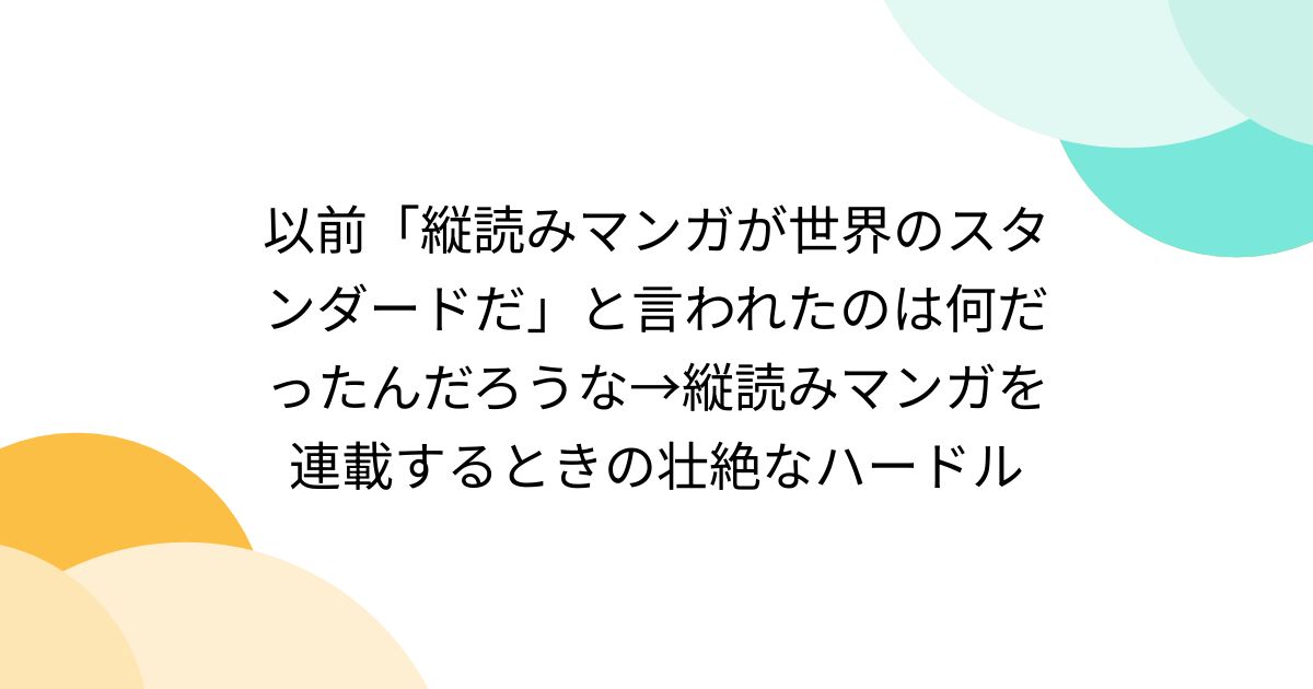 以前「縦読みマンガが世界のスタンダードだ」と言われたのは何だったんだろうな→縦読みマンガを連載するときの壮絶なハードル(togetter)