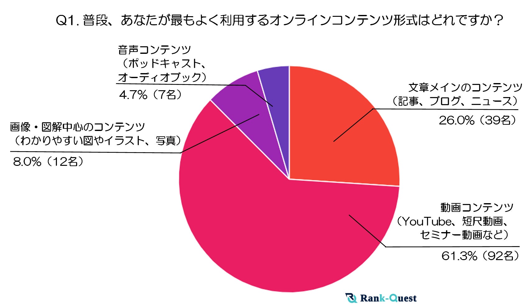 30代は目的や状況に応じて動画、テキスト、画像、音声などのコンテンツ形式をどう使い分けているのか、の調査です。「商品・サービスを購入する前に最も参考にするコンテンツ形式はどれですか?」と聞かれたら、私はなんと答えるかなあ。あんまり調べて買わないんだよねえ。