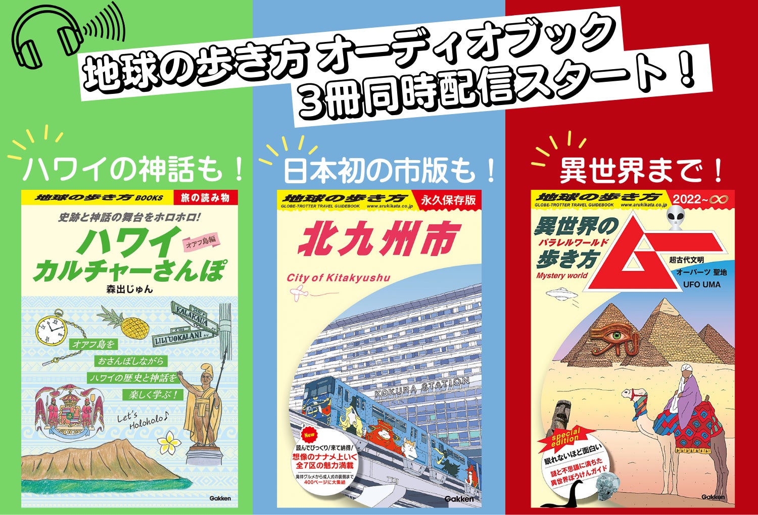 「地球の歩き方」から新たなオーディオブックが登場。ハワイ、北九州市、そして異世界へ……話題の書籍3冊が“聴く旅の本”となって同時配信開始 !(学研ホールディングス)