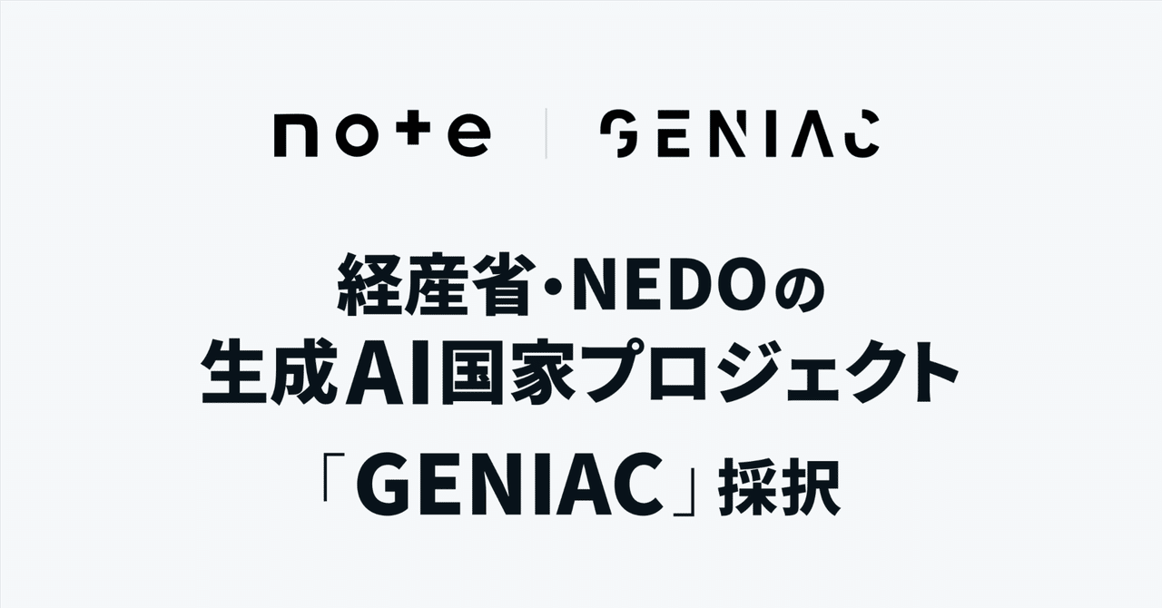 note、生成AIの社会実装を加速する国家プロジェクト「GENIAC」に採択。出版社やクリエイターに対価が還元される「RAGデータエコシステム」構築へ(note)