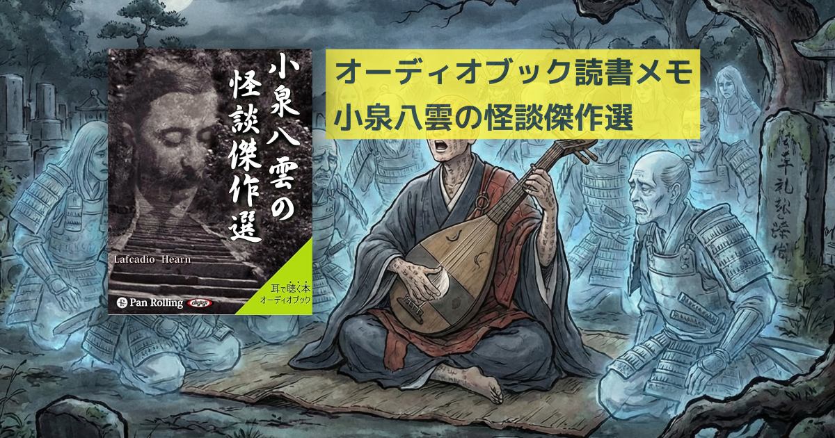 書店には朝ドラ関連書として小泉八雲の書籍が並んでいます。そうだ怪談といえば音声コンテンツじゃあないですか、と探しました。ありました。『雪女』 『ろくろ首』 『貉(むじな)』 『耳無芳一の話』という代表的なお話が収録されています。