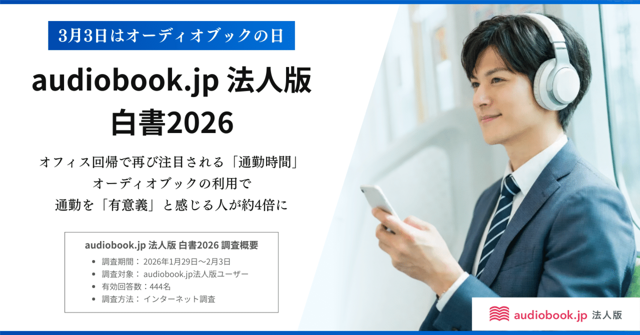 オフィス回帰で再び注目される「通勤時間」。オーディオブックの利用で通勤を「有意義」と感じる人が約4倍に 【audiobook.jp法人版白書2026】|オーディオブック配信 audiobook. jp(オーディオブックJP)公式