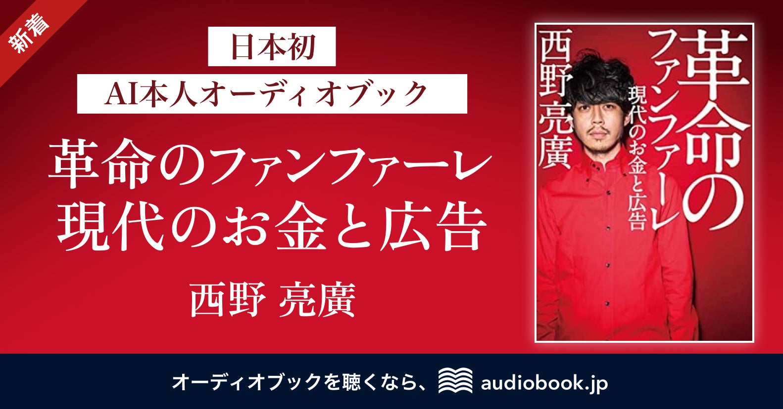 日本初の“AI本人オーディオブック” をaudiobook.jpで配信 第1弾は著者・キングコング西野亮廣さんの声で読む『革命のファンファーレ 現代のお金と広告』(PR TIMES)